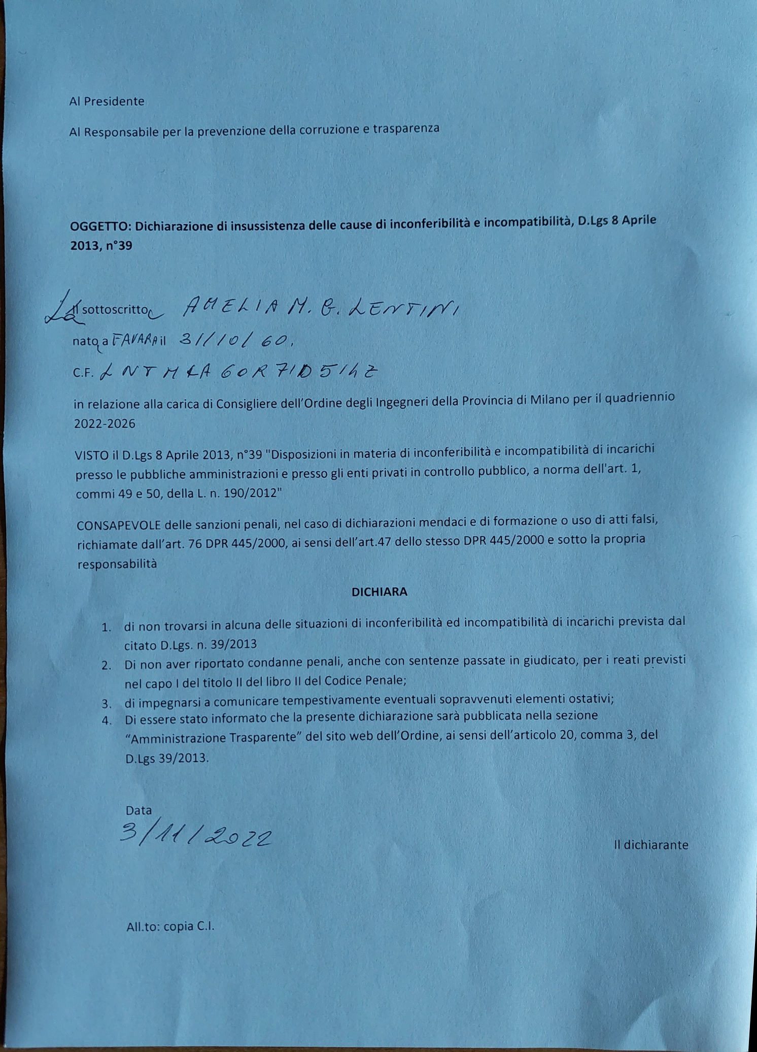 Curricula e Dichiarazioni